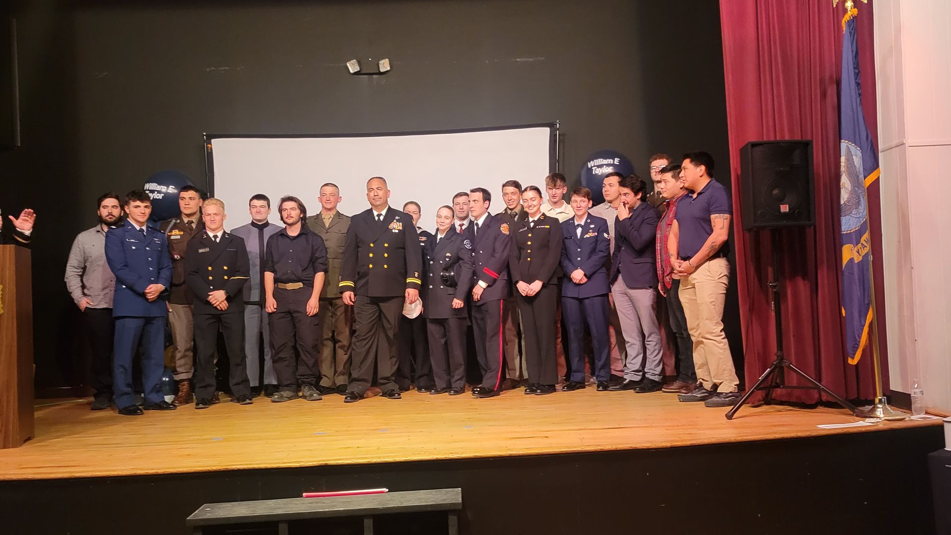 Council President Bill Youngblood and Director Chris Baker attended the annual Bensalem HS MCJROTC